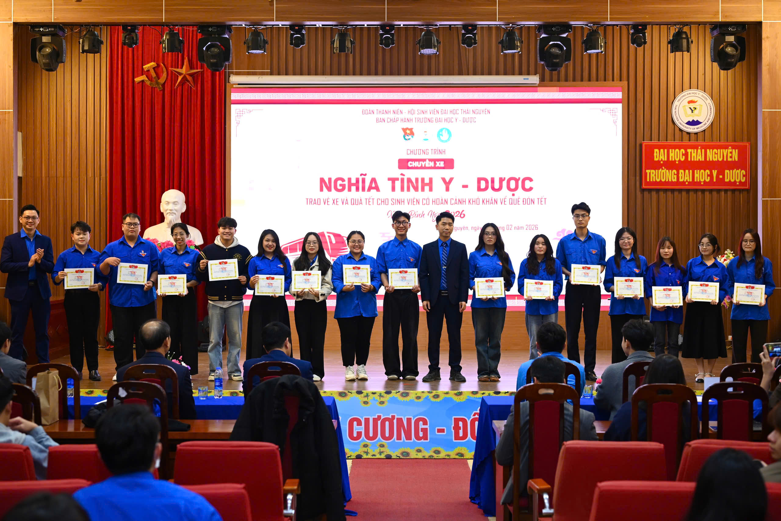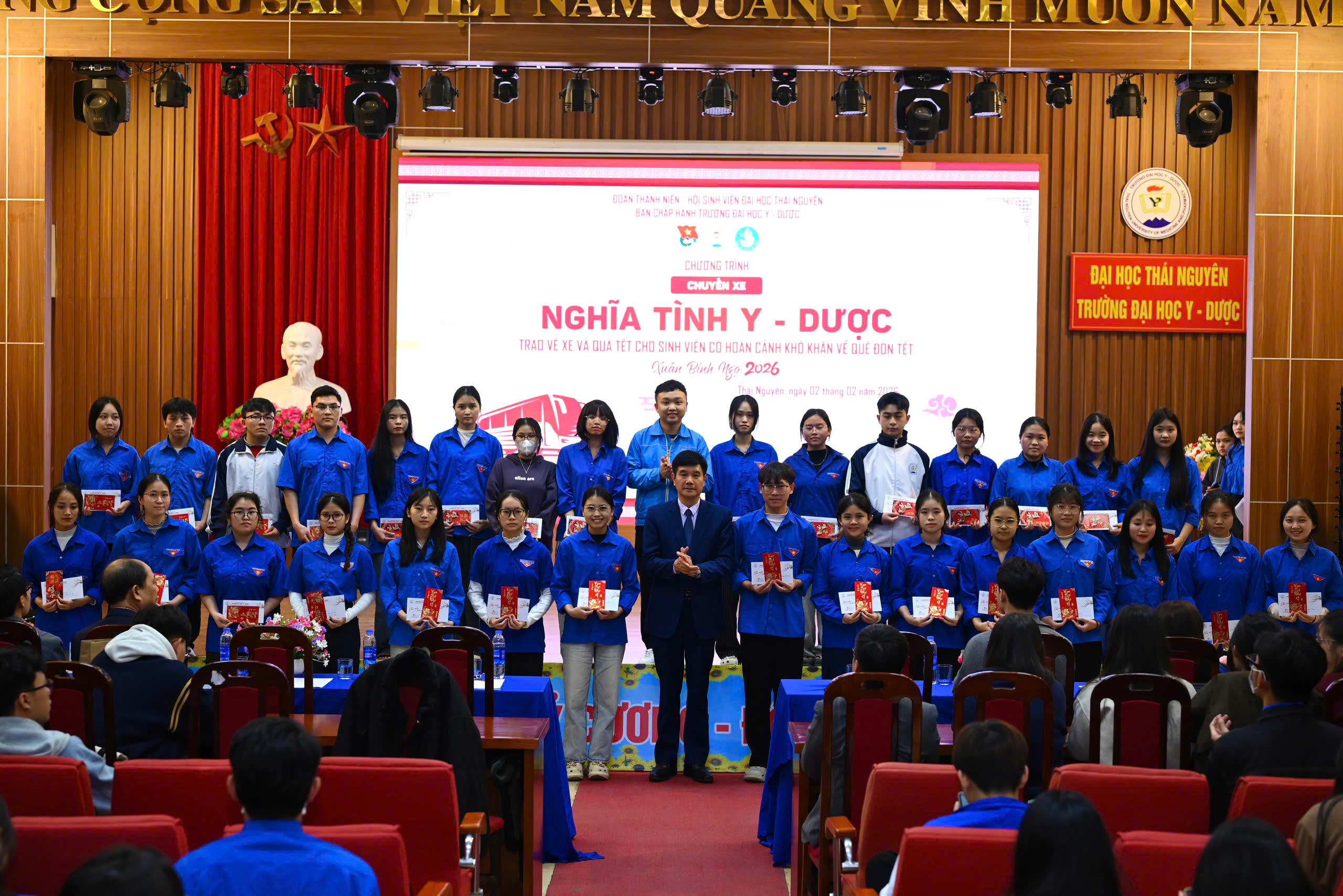 Hướng tới Tết Nguyên đán Bính Ngọ 2026, Đoàn Thanh niên – Hội Sinh viên Trường Đại học Y – Dược, Đại học Thái Nguyên đã tổ chức chương trình trao vé xe về quê cho sinh viên có hoàn cảnh khó khăn trong khuôn khổ chương trình “Chuyến xe nghĩa tình Y – Dược”. Đây là hoạt động mang ý nghĩa nhân văn sâu sắc, thể hiện sự quan tâm, đồng hành của Nhà trường và các tổ chức Đoàn – Hội đối với sinh viên trong dịp Tết cổ truyền của dân tộc.